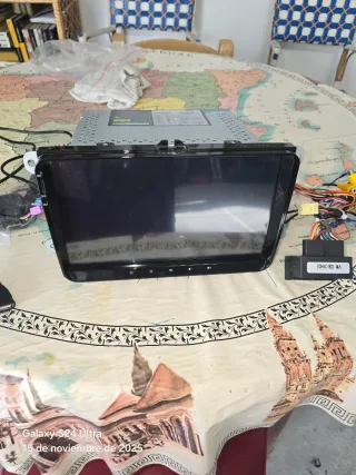 Radio para Seat Leon MK2, Golf 5, Golf 6 y Caddy. Se vende por no usar radio pantalla de 9 pulgadas con todo lo necesario para su montaje tiene canbus te dice si tienes puertas abierta los km el gasoil freno de mano puesto... no tiene carplay tiene la aplicacion pero hace falta un modulo tiene para dos usb, tarjeta memoria, bluetooth gps sin estrenar adaptador para antena de radio pantalla intacta ya que aun conserva el protector de nueva - Pantalla táctil. - Conexiones para cableado.
