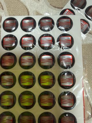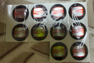 Set de pegatinas con el logo de SEAT para personalizar llaves. - Diámetro de 14mm. - Diseño plateado y rojo. -Precio por unidad. -pieza de origen.
