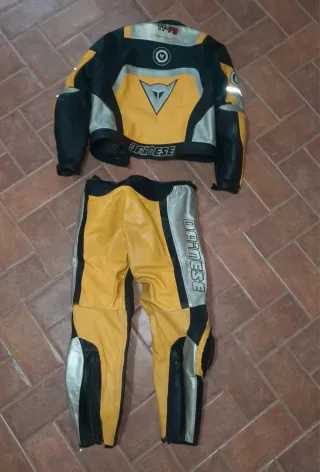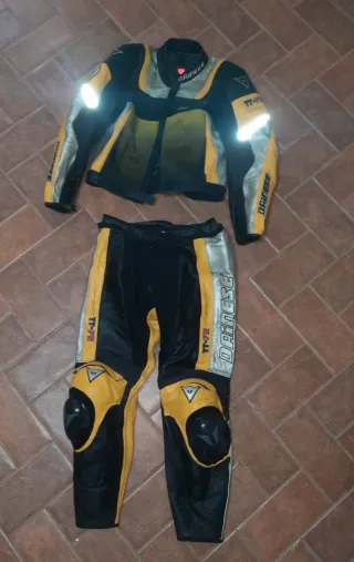 Conjunto de mono de moto Dainese de dos piezas para carretera. Me está Grande, yo peso 84 kg y mido 1,72 m ...el traje está en muy buen, buen estado. - Chaqueta y pantalón. - Protecciones - Diseño deportivo en negro y amarillo.