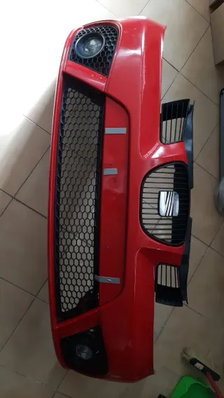 Paragolpes delantero para Seat Ibiza 6L en color rojo. - Diseño deportivo con rejillas. - Incluye huecos para antinieblas. - Logo de Seat integrado en la parrilla central.