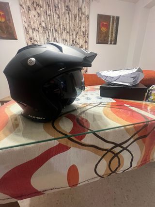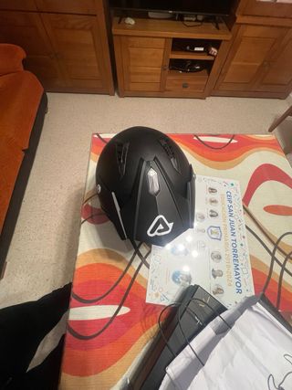 Casco jet de la marca Acerbis en color negro. - Diseño moderno y aerodinámico. - Visera integrada. - Cierre de seguridad. -Gafas integradas Se entrega con su caja y su funda -Talla L