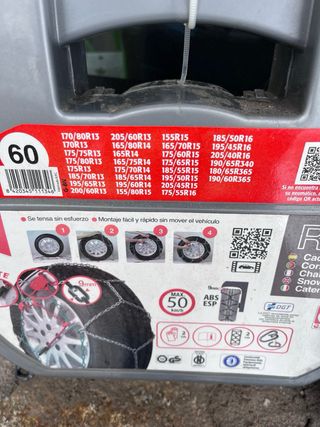 Vendo cadenas para la nieve de la Talla 40. Están nuevas, sin estrenar y en las fotos se ve para que medidas de neumáticos sirven.
