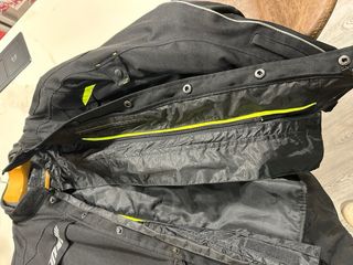 Talla L Chaqueta de moto de estilo touring, con un diseño largo de 3/4. Combinación de colores negro y amarillo. Confeccionada con poliéster 600D Triple capa con membrana impermeable y forro térmico desmontable 100% impermeable y apta para bajas temperaturas Tejido exterior de alta resistencia Ventilaciones en la parte delantera y trasera para una mayor transpiración Ajustable en mangas y cintura Reflectante para mejor visibilidad Incluye protecciones CE en codos y hombros, además de un bolsillo para espaldera para mayor seguridad y protección.
