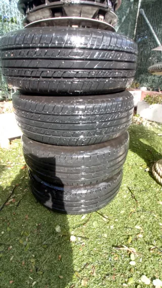 Juego de 4 ruedas completo Mercedes W124. Neumáticos llantas tapacubos y tornillos. - Incluye 20 tornillos y tapacubos. - Dos ruedas son nuevas y dos tienen un 90% de vida útil.