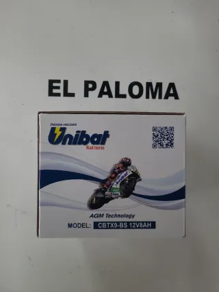 Batería de moto marca Unibat, modelo CBTX9-BS. - Voltaje: 12V - Capacidad: 8AH - CCA: 120 - Tipo: Sin mantenimiento.nueva a estrenar.tel.653988775 Isidoro ref.3.039 precio oferta liquidacion 28.99 €