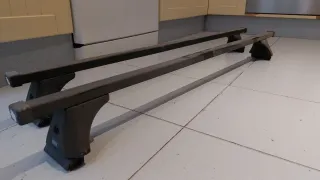 Juego de portaequipajes para coche. Son barras de techo negras. - Barras de techo negras. - Soportes de plástico negro.