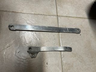 Conjunto de piezas de Bultaco. - Dos estriberas metálicas mk-11 mal estado - Palancas de cambio mal de estriado - sujeccion filtro pursang mk-7 - Eje basculante mal estado rosca - Soporte metálico. - Dos tirantes sujeccion frenos mk-11 250 buen estado. - 30 € tirante freno delantero -30 € tirante freno trasero 30 € sujeccion filtro aire mk-7 Resto a 5 € o lo regalo al que compre lo anterior, que si esta en buen estado. Piezas rodeadas en azul reservadas .