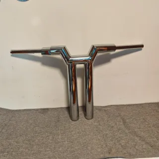 Manillar custom de estilo robusto y acabado cromado brillante. Diseñado para añadir un toque distintivo a tu motocicleta. - Material: Metal cromado. - Diseño: Doble barra central con extensiones laterales. Diámetro del cuerpo 50mm Diametro de tubo de los puños 25mm Totalmente nuevo, realizo envíos. Precio negociable Escucho ofertas
