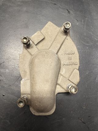 Tapa de bomba de agua original KTM 450. En buen estado general, sin fisuras ni roturas. Fabricada en aluminio fundido, con roscas y superficies de ajuste en buen estado. Ideal para sustituir una tapa dañada o filtrante. Incluye tornillería y junta montada. Compatible con KTM 450 EXC, SX y SMR (años 2003-2007). Pieza original “Made in Austria”, revisada y lista para montar. #KTM #EXC450 #SX450 #SMR450 #BombaDeAgua #MotorKTM #RepuestosMoto