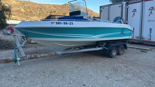 Barco tipo open de 5,50 metros de eslora. Ideal para paseos y pesca. - Asientos acolchados en color azul. - Volante y consola de mando. - Toldos de protección. - Radio con bluetooth - Motor 115cv con 100h - Toldo bimini Se entrega sin remolque o ajustando precio Barco a toda prueba muy estable y comodo Precio algo negociable Se aceptan cambios por moto de agua del mismo valor o ajustando diferencia 4x4 patrol Audi Mercedes Bmw