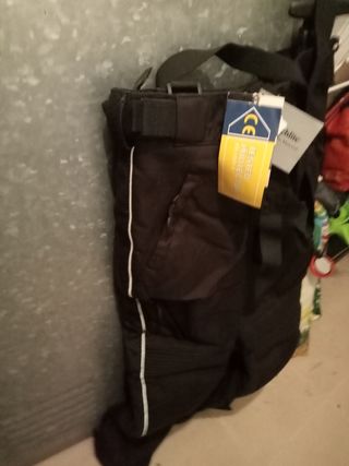 Pantalones cordura de moto Revit. Refuerzo en rodillas, ajuste de cintura mediante cinta elástica, ajuste de piernas mediante cremallera y velcro, forro interior desmontable, protecciones rígidas desmontables disponibles en la rodilla, posibilidad de montar protección de cadera ( no incluidas). El pantalón está en muy buen estado, lo único a destacar un pequeño parque abajo en la pierna derecha, debido al roce con el escape se quemó un poco (ver foto) no afecta para nada al uso del pantalón, no entra agua. Medidas del producto: Talla XS Ancho de cintura 38 cm Largo total 105 cm Ancho tobillo 22 cm