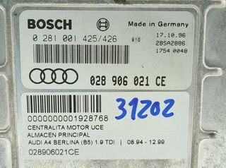 Referencia 028906021CE. AUDI A4 BERLINA B5 Año 1994 1.9 TDI centralita motor uce. Observaciones 0281001425 426. Código interno 1928768.