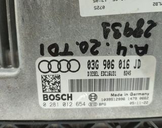 AUDI A4 BERLINA 8E Año 2004 2.0 TDI 16V 103KW centralita motor uce. Observaciones 0281012654 - articulo sujeto a codificacion y o desbloqueo de componentes se facilita vin para su obtencion en servicio oficial. Referencia 03G906016JD. Código interno 1378984.