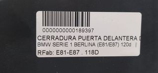CERRADURA PUERTA DELANTERA DERECHA de recambio para BMW SERIE 1 BERLINA (E81/E87) 120d | 03.07 - 12.07 - Diesel con id 189397 Puede consultar más detalles en el sitio web de Desguaces Rate