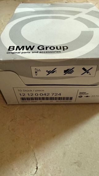 Bujía de encendido original BMW. Tengo 6, nunca estuvieron usada, las compre por error. - Número de pieza: 12 120 042 724. - Fabricada en Japón. - Incluye 6 piezas. Por BMW 1 Series (F21), 1 Series (F20), 2 Series (F23), 2 Series (F22), 3 Series (F30), 3 Series (F31), 4 Series (F33), 5 Series (F10 und F11), X3 (F25), X4 (F26), X5 (F15), X6 (F16) + otros dependiendo si quieres una bujía mas fria por mejor performance por un BMW M2 M3 M4 con motor S55