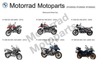 2 Insignias tapabujes para centro de rueda llanta y/o cardan para motos BMW Fabricación ALEMANA Van a presión con pestañas interiores para el buje. De las medidas para: R 1200 GS K25 (R1200GS) (2004 - 2012) R 1200 GS Adv K25 (2007 - 2013) R 1200 GS LC K50 (R1200GSLC) (2012 - 2018) R 1200 GS LC Adv K51 (R1200GSLCADV) (2012 - 2018) R 1250 GS K50 (R1250GS) (2018 - 2023) R 1250 GS Adv K51 (R1250GSADV) (2018 - 2023) R 1250 GS HP R 1300 GS GG13 (R1300GS) (2023 - Act) R 1300 GS Adv (R1300GSADV) (2024 - Act) NUEVAS PRECINTADAS #ADVENTURE #MOTORRAD #WUNDERLICH #TOURATECH #TRAIL