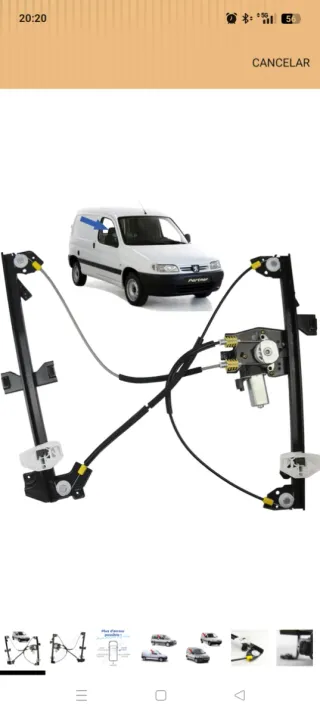 Elevalunas delantero derecho para Peugeot Partner y Citroen berlingo(1996-2008). Se incluye el mecanismo completo con motor. - Mecanismo de elevalunas delantero derecho. - Incluye motor eléctrico. Nuevo sin estrenar