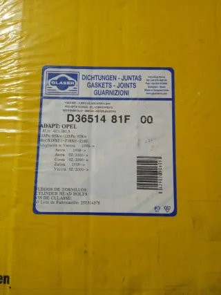 Vendo Kit de juntas de descarbonización de culata nuevo referencia Glaser D36514 valido para Opel Astra G , Corsa C , Vectra B y Zafira A con motor 1.8 16 válvulas