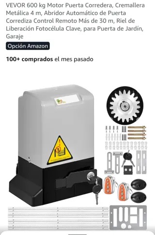 Motor para puerta corredera de 600 kg con cremallera metálica de 4 metros. Incluye abridor automático, control remoto de más de 30 metros, fotocélula y riel de liberación. Todo lo que se ve en las fotos.