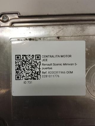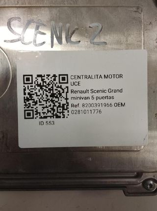 8200391966 8200386508 Referencia 0281011776. centralita motor uce RENAULT SCENIC - 2 GENERACION 2003 - 2006 - GRAND MINIVAN 5-PUERTAS Año 2003 OTROS. Código interno 553.