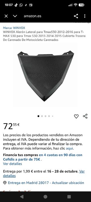 Carenado trasero para Yamaha T-MAX 530. Diseño en imitación carbono. - Compatible con modelos 2012-2016. - Material: Plástico ABS con acabado en fibra de carbono.