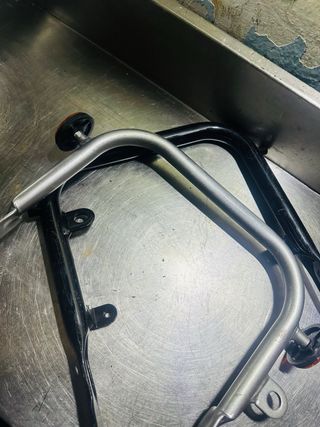 Soporte para baúl de Yamaha NMAX, modelo 2024. Fabricado en metal negro resistente. - Diseño específico para Yamaha NMAX 2024. - Acabado en color negro mate. - Incluye puntos de anclaje para su montaje.