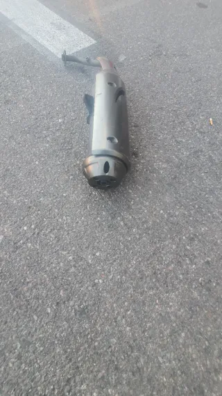 Sistema de escape para Kymco Superdink 125. Pieza de recambio. Con los plásticos en buen estado solo los pequeños roces q se aprecia Se puede entregar en mano o envio - Color gris oscuro. - Diseño curvo y compacto.