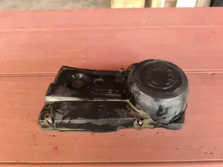 Tapa de motor para Derbi Variant. Pieza de recambio en color negro. - Diseño con relieve circular. - Inscripción de la marca 'DERBI'.