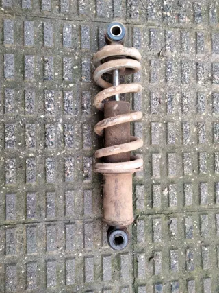 Amortiguador trasero para motos Puch TZX y Condor. Se encuentra en el estado que se muestra en las imágenes. - Compatible con modelos Puch TZX. - Compatible con modelos Puch Condor.