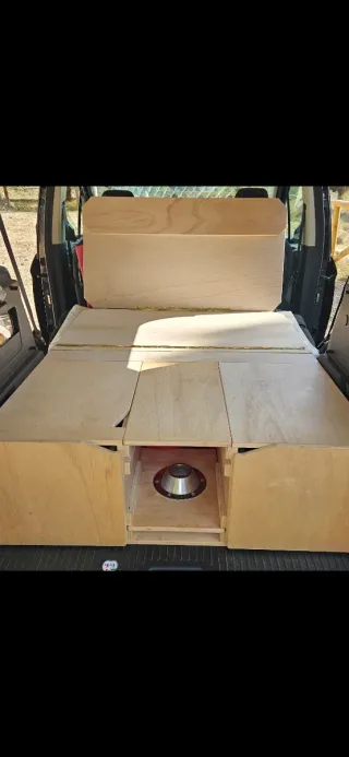 -Para Renault Kangoo, Berlingo, Caddy o similar -Usado pocas veces, resistente y ligero (fenólico de pino), lo vendo por cambio de configuración de furgo Camper, mi coche es Caddy Maxi 2025. -Medidas ancho 115cm/ largo con cama extendida 180cm / alto 35cm Va en el maletero, no hace falta homologación ni anclaje Precio del mueble 250€, colchón no incluido. -Recoger en domicilio -Defecto abajo, foto 6. No afecta al uso, se puede ver en persona antes de la compra.