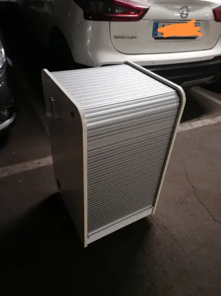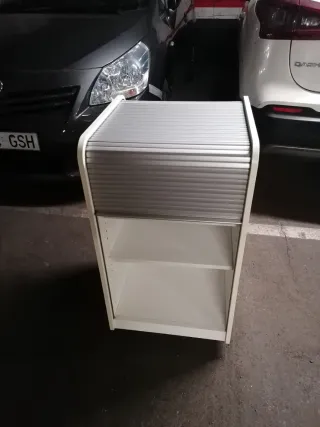 Mueble auxiliar con diseño moderno y funcional, ideal para proyectos de camperización o almacenamiento. Medidas: 50x50x80 sin ruedas, con ruedas 87 (no están demasiado bien). - Puerta con persiana corredera.