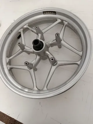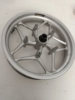 Llanta delantera de aleación para BMW F 800 ST. Diseño de 5 radios. - Color plateado. - Incluye buje central.