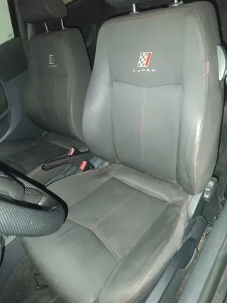 Asientos delanteros para Seat Ibiza Cupra. - Tapicería de tela. - Costuras rojas. - Logo Cupra bordado.