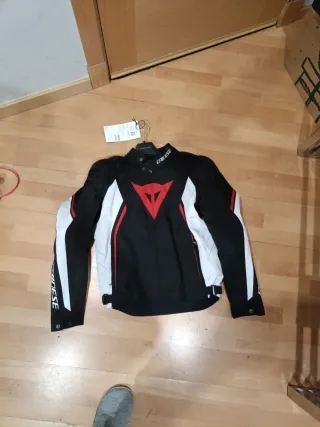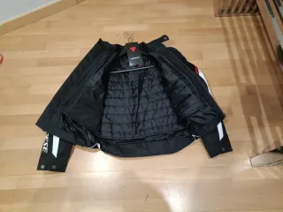 Cazadora de cordura Dainese Avro D2. - Diseño en negro, blanco y rojo. - Cierre de cremallera frontal. - Puños ajustables con botones a presión. - Logos de la marca Dainese en mangas y frontal. Está prácticamente nueva ,talla 50 Se uso 5 veces como mucho Precio en tienda 300 eur