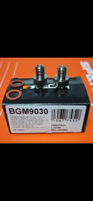 Set de tornillos de carter BGM PRC para Vespa. - Medida M8 x 8mm. - Incluye imán. - Compatible con modelos: Vespa PX, T5 125cc Cosa, Rally 180 (VSD1T), Rally 200 (VSE1T), Sprint 150 (VLB1T), TS125 (VNL3T), GT125 (VNL2T), GTR125 (VNL2T), GL150 (VLA1T), Super SS180 (VSC1T), GS160/GS4 (VSB1T), VNA, VNB, VBA, VBB, V50, V90, SS50, V90, RV125, ET3, FKS, PKA. - Referencia: CB-05E3.