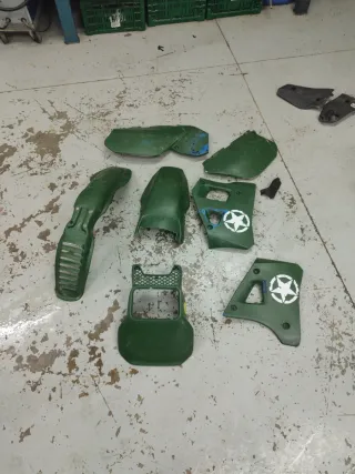 Kit plàstica esclusivo pintado en verde para Yamaha DT 125 del año 1995. Piezas de color verde. - Guardabarros delantero. - Guardabarros trasero. - Paneles laterales. - Placa faro - placas laterales