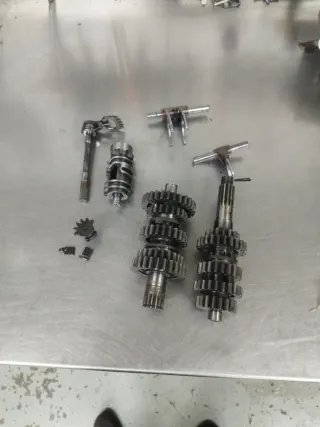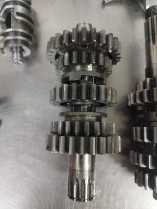 Conjunto de engranajes y ejes para caja de cambios de moto. - Componentes metálicos para TM Racing. - Modelos compatibles: 250 y 300. - Año de fabricación: 2014.