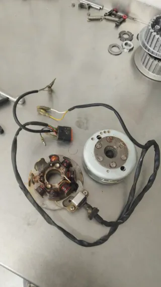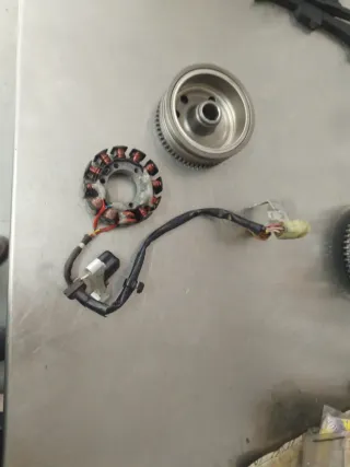 Componentes de encendido electrónico para motos Gas Gas EC 300 y Rieju. Incluye el estator y el volante magnético. - Estator con bobinado de cobre. - Volante magnético con engranaje. - Cableado con conector.