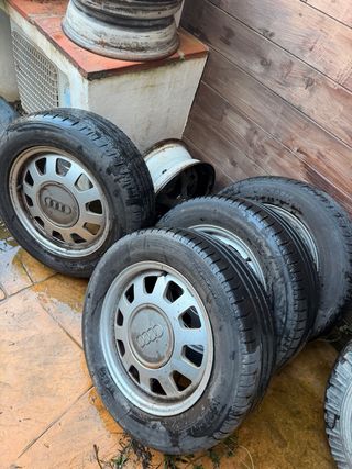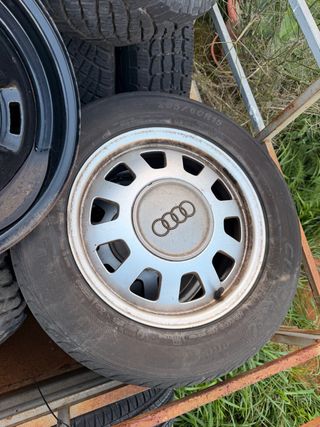 Juego de llantas con neumáticos para Audi A4. Montadas en un A4 1997 Precio por las 4. - Medida del neumático: 205/60R15. - Diseño deportivo con el logo de Audi en el centro.