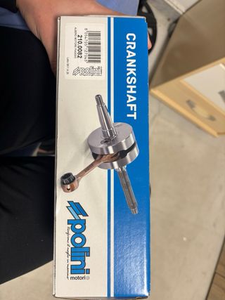 Cigüeñal Polini para moto. - Material: Acero. - Diseño: Doble biela.