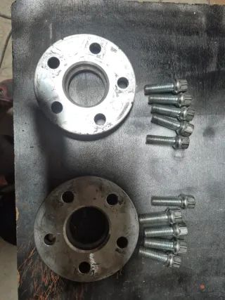 Set de separadores de rueda de 1.3 cm con anclaje 5x100, compatibles con Volkswagen. - Material: Metal. - Grosor: 1.3 cm. - Patrón de pernos: 5x100. - Montados en golf mk3 - Va cun sus tornillos correspondientes