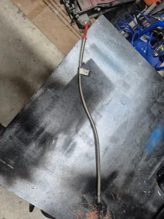 Varilla para medir el nivel de aceite del motor. - Compatible con motores 2.8 VR6. - Tubo metálico con extremo de plástico rojo.