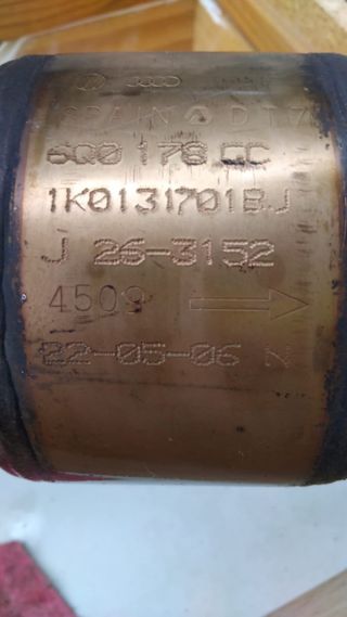 Catalizador de Volkswagen Polo. - Número de pieza: 1K0131701BJ - Fabricado en España - Código: J 26-3152 - Fecha de fabricación: 22-05-06