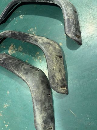 Juego de 4 aletines anchos para Defender. Piezas de plástico negro con un diseño robusto. Sin usar, sucios de estar guardados. - Fabricados en plástico resistente. - Color negro. - Diseño ancho para mayor cobertura.
