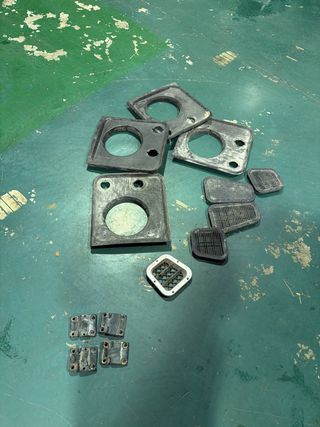 Lote de plásticos y bisagras para Land Rover Defender. - Plásticos de goma para faros y rejillas. - Bisagras metálicas para puertas o capó.