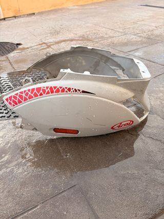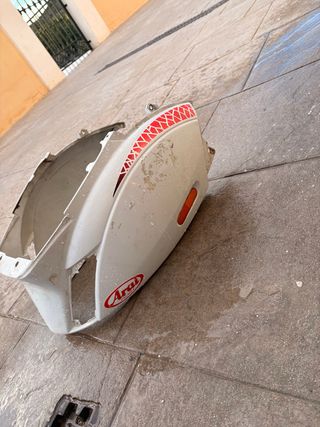 Carenado de Piaggio con detalles de diseño Arai. - Color blanco con detalles rojos. - Incluye intermitente naranja.