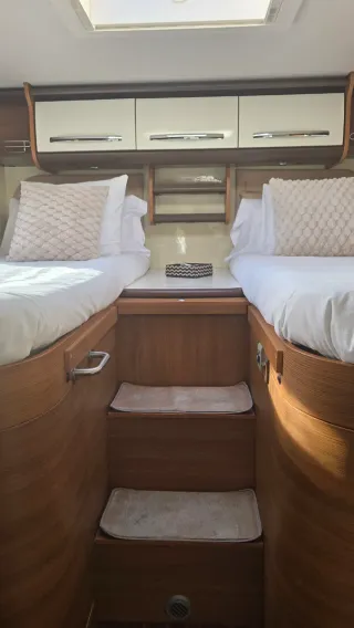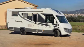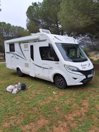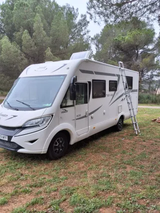 Año 2013 Motor Fiat 150 CV 118.000 kms 4 plazas viajar y dormir Longitud 7,5 m Camas traseras gemelas y Cama matrimonio basculante en cabina. Smart Tv en Salon y otra en dormitorio. Antena terrestre, campana extractora, placa solar 180w Alarma volumetrica con sensores ventanas y puertas. Camara trasera Toldo thule Inverter nuevo onda pura 2000w Aire acondicionado Truma en habitáculo para conectar a 220 v Microondas funciona con inverter. Horno Dometic a gas y nevera 150 l therford trivalente. Calefaccion con gas-oil Hebasto. Garaje grande con porta motos. Portabicicletas extraible. Suspension neumatica. Patas estabilizadoras manual