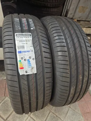 Juego de neumáticos Bridgestone Turanza. - Medida: 255/60 R18. - Índice de carga: 112V. - Versión XL (Extra Load). - Etiquetado energético: Clase A en agarre en mojado y Clase B en eficiencia de combustible.