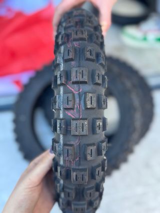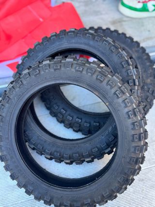 Vendo juego de neumáticos de motocross usados tal cual se ven en las fotos. El trasero es un Dunlop Geomax MX51 en medida 100/90/19 con un valor de nuevo de entre 80 y 90€. El delantero es un Bridgestone motocross M403 en medida 80/100/21 con un coste de nuevo de unos 70€. Vendo la pareja en 30€.