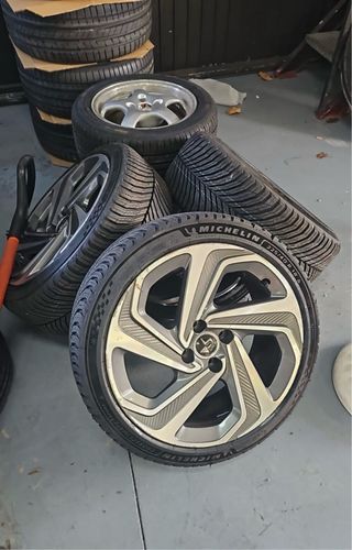 Juego de 4 llantas DS5 equilibradas y con neumáticos completamente nuevos al 100% - Medida: 4x108 8x18 ET27 Buje 65,1 - Modelo: Adelaide Ds5 - Neumaticos: Michelin Cross climate 2, 225/40/18 Diseño deportivo y moderno, las tenia montadas en un citroen c4 VTS, las llantas estan como nuevas con algunos signos de uso y ya, están perfectas, neumáticos nuevos a las 4, unos Michelin Cross Climate 2 que estan al 100% listas para montar y disfrutar, solo los neumáticos son 500€ nuevos.